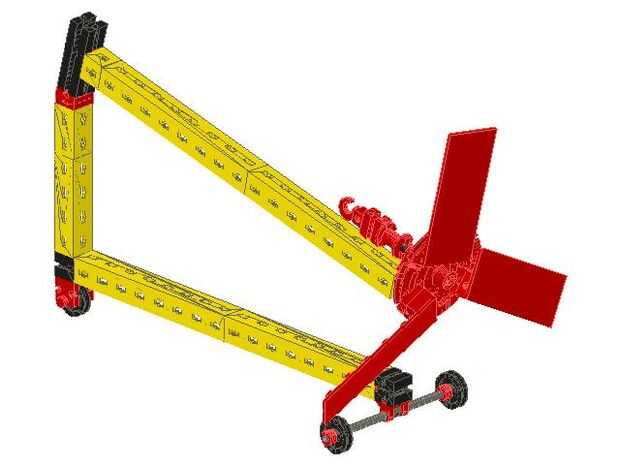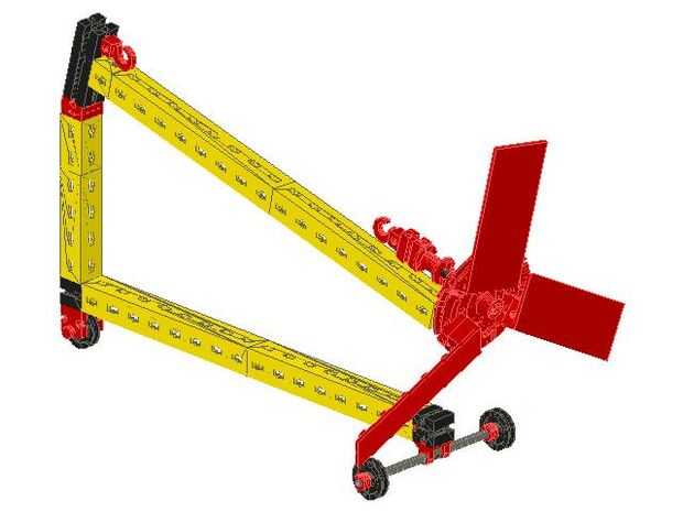 Agregar el armazón superior al modelo deslizando el 15 viga en la leva de la primavera. Añadir un gancho en los bloques por encima de la Asamblea.