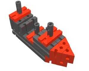 Añadir Clip adaptador para dos levas de primavera. Centro de cada combinación de adaptador/resorte leva en un bloque de construcción 15 x 30 x 5 con ranura y Pin. Centro de una Asamblea a la pareja superior de bloque 30s. Deslice el otro en la parte posterior edificio bloque de 15s.