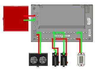Conecte los sensores de toque puertos I-1 y I-2. Conecte el Ranger Sonic de la distancia al puerto D-1. Conecte el zumbador al puerto de M-1. Conecte la batería a los puertos de interfaz de potencia.