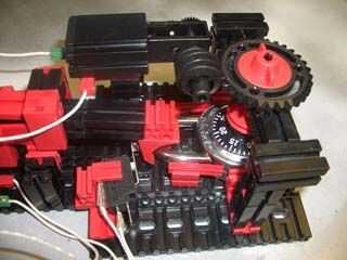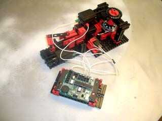 En mi primera versión del selector de cerradura, utilicé un montón de elementos de fischertechnik, incluyendo dos motores de 9 v, un ladrillo programable PC con el controlador de la robótica de PC y un sensor de tacto simple.