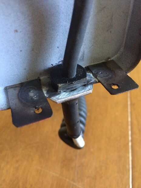Hasta ahora todo el trabajo se ha hecho en la cara de la caja. Este paso será preparar el fondo de la caja para el montaje. Usando una 3/8 broca, había perforado un orificio de despeje para el alivio de tensión de cable de control y corte el borde del cuadro de abajo permite el alivio de tensión para deslizarse en posición de proteger el cableado ya que va en la caja. También hice un espaciador en forma de "C" que se puede ver en las fotos usando una arandela 3/8" plana que modifiqué para deslizarse en la ranura en el alivio de tensión no sólo un espacio sino para fijar firmemente el cable de control en posición.