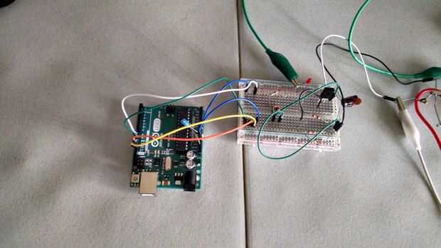 Usé el ATtiny45 para este proyecto. El código es bastante simple, así de ATtiny 4K de memoria es suficiente. Usé un Arduino Uno como programador (ISP). Instrucciones sobre cómo configurar un Uno como un ISP puede encontrarse aquí. (Gracias, High-Low Tech!) Una vez configurado tu Arduino, necesita 6 cables de puente y un condensador de 10uF (para el Arduino restablece pin). Puedes ver mi Arduino en la imagen. Nota: compartí la protoboard con mi circuito de prueba. Por lo que en un lado de la protoboard programé el ATtiny y por otro lado fue donde probé el programa. Tenga cuidado de no insertar la uC de 8-pin al revés! (Hice y derretido una parte de mi protoboard).