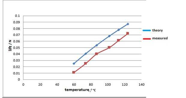 Puede verse que los valores medidos de la elevación es menos teórico. Eso explica como consecuencia del método de medir la temperatura en un globo. La sonda de temperatura fue colocada en el centro de la parte superior de globos donde la temperatura es superior a la media. En las partes bajas de las paredes de la de globo y la temperatura es menor que el medido y elevación es menor.