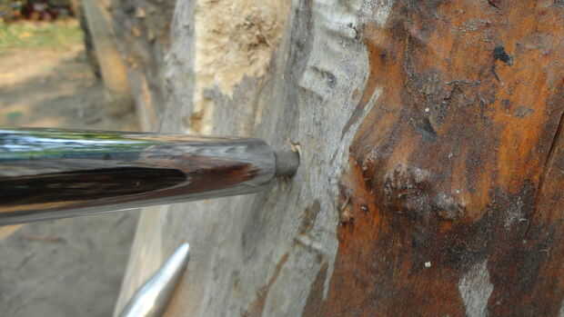 un amortiguador barras (barra de pistón cromado) tallado hacia fuera como un lápiz