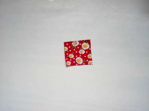 edredón de origami de tela de Esta aplicacao mistura o bloque com o tradicional fuxico.Pode ser usada em uma fivela, broche ou aplicada na roupa.Paso 1: Retalho Em de Corte o retalho um quadrado. Este tem 9 x 9 cm.Para certeza de esta bem certinho, d