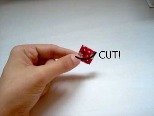 Raiz o quadrado com como pontas cruas tecido para baixo e corte como indicado na figura.