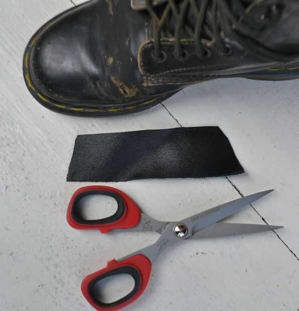Colocar el cuero sobre sus botas y cortar una raya que tape los orificios, yendo de un lado de la otra de tus botas.