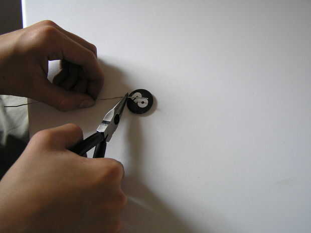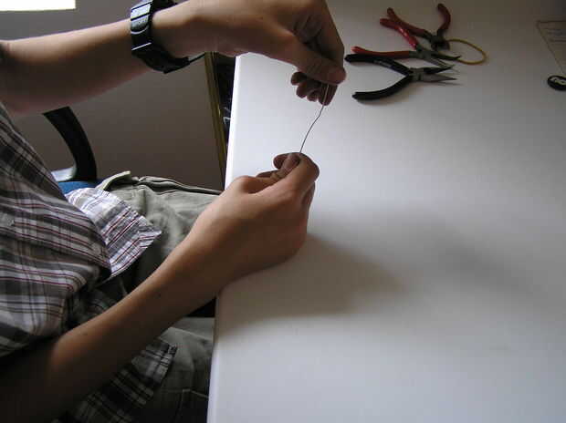 Enderezar su clip de papel, no tiene que ser real recta pero sobre todo así. Ojo la distancia de un lado de la placa a la otra, menos unos 5mm y con la misma distancia desde el extremo del clip de papel hacer un 90 grados de la curva.