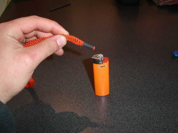 Idealmente la tubería va a ser reducido con una pistola de calor, pero cualquier fuente de calor va a hacer. Agarré un encendedor y cuidadosamente llevó a cabo bajo el tubo por unos segundos para que la parte superior de la llama fue alrededor de una pulgada por debajo de la tubería. No bien a la luz del tubo en el fuego directamente, así que deja un pequeño espacio y mantener la fuente de calor en movimiento.