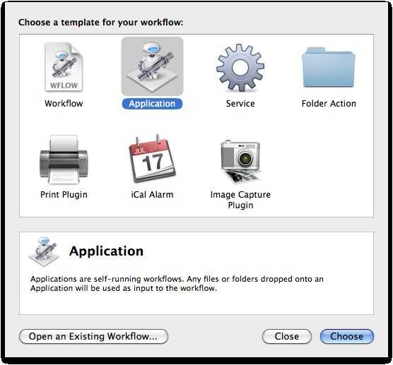 Un cuadro de diálogo aparece preguntando qué plantilla utilizar, elegir "Aplicaciones".