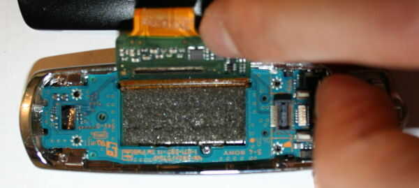 Ahora puede retirar el tablero inferior, teniendo en cuenta que hay un pequeño trozo de cinta de doble faz con un lado hacia abajo - suavemente quitar esto.
