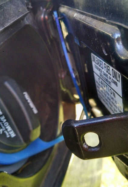 5. Asegure la cola de anclaje a la puerta de gas empujando el perno de plástico en el orificio de que vino. Es la parte superior izquierda de mi coche en caso de no tomar una foto antes de mano.