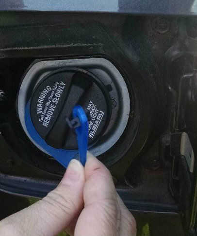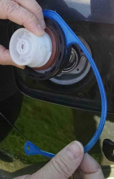 2 volver al coche y retire la tapa de gas desde el cuello de relleno.