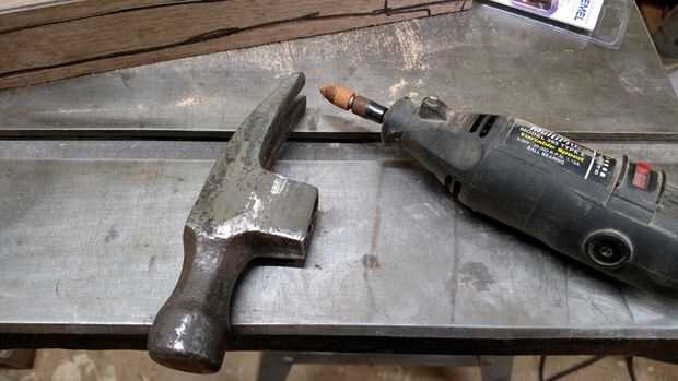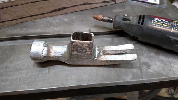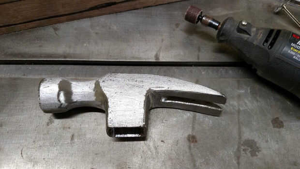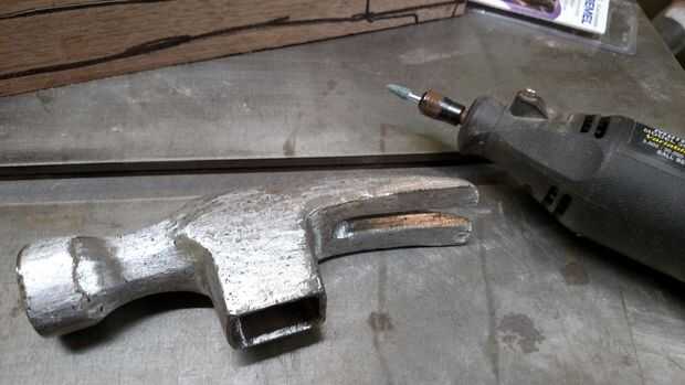 Después de recibir el mango viejo hacia fuera de su tiempo para hacer el acero viejo brillante. Empecé con lijar el acero con papel de lija de grano 220. Esto funcionaba decentemente bien pero era muy lento va. Rápidamente cambié a una Dremel. Empecé con el piedras de amolar de óxido de aluminio, se trasladó al accesorio de papel de lija, dos accesorios metal pulidos y luego finalmente le dio un ligero pulimento con la rueda del paño y algún compuesto que pulimenta. La mayoría de estos pasos deshacerse de algunas chispas y todos ellos implican cosas girando a alta velocidades así que asegúrese de llevar sus gafas de seguridad. También asegúrese de limpiar el interior de la cabeza del martillo para que al epoxy en el nuevo tirador tenga una buena superficie para enlazar a.