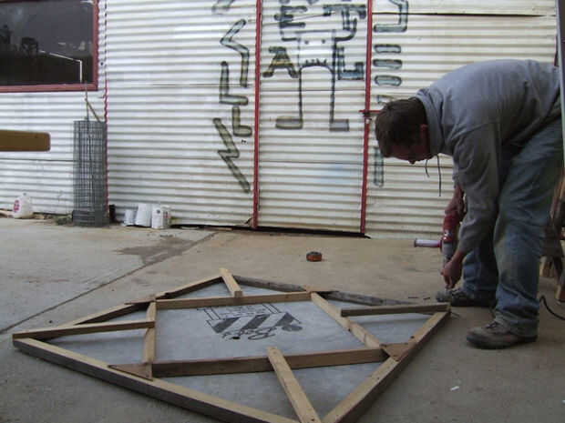 Conectar los puntos medios del cuadrado interior con las esquinas de la llanta. Estas piezas se sientan encima de los demás. En tornillo desde la parte inferior de la tabla, no a través de la señal.