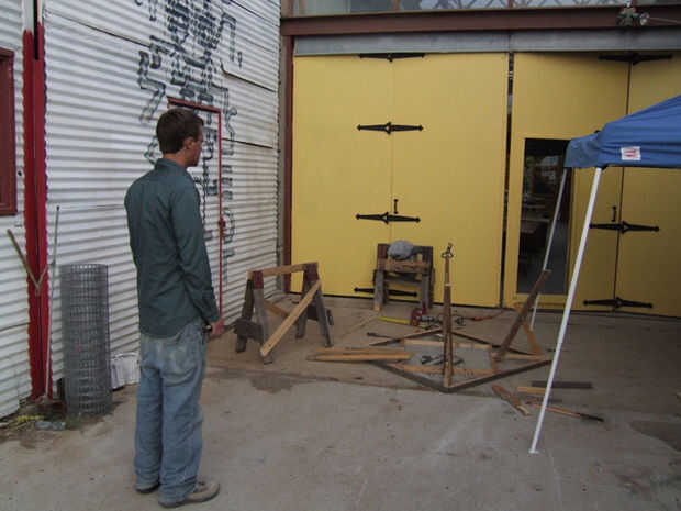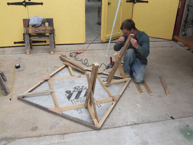 Las piernas están hechas de tiras de 3/4" madera contrachapada rasgado hacia abajo con una sierra de banda a cerca de dos pulgadas de gruesas en un extremo y tres o menos en el otro. Esto les da una agradable forma de cónica, a la elegancia un poco en la postura