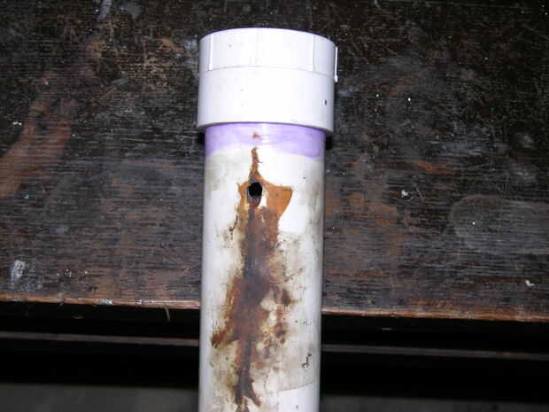 1. Aplique la imprimación de PVC a la última pulgada de la tubería de 19" y el interior del acoplador. (Siga las instrucciones en la lata de imprimador de PVC y cemento, para aplicaciones que puedan ser diferentes entonces mina)