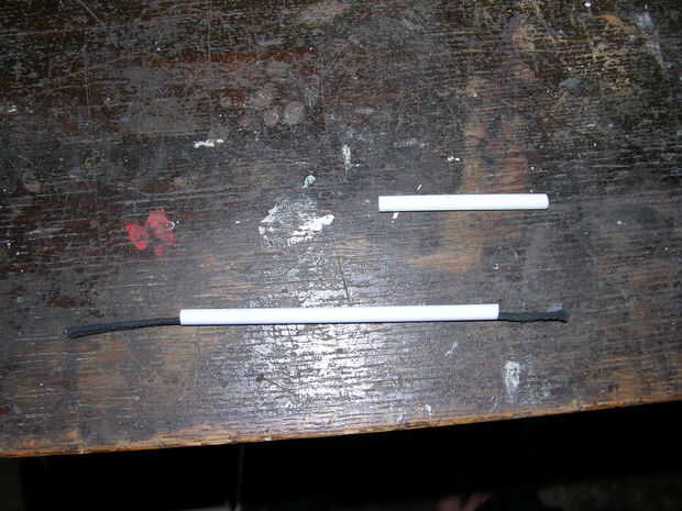 1. tomar una pajita de plástico y corte unas 3 pulgadas. Ponga un trozo del fusible casero en la sección más larga de la paja.