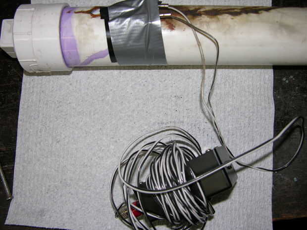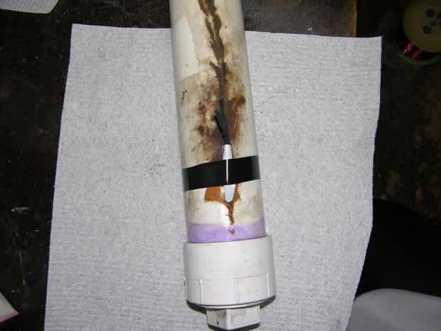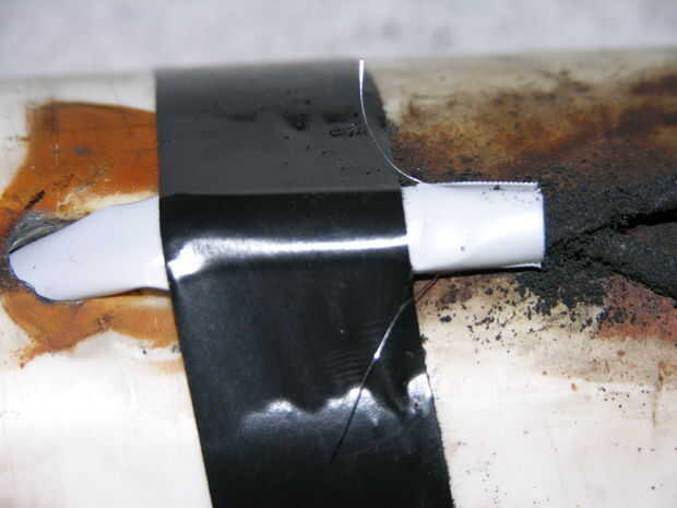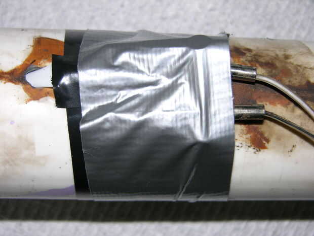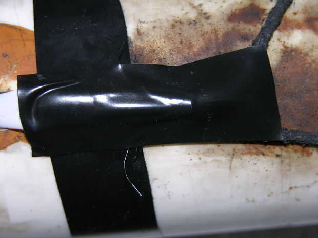 5. dar un empujón en la paja y el fusible en el exterior, para asegurarse de que es como ahora que se vaya y entonces garantizar la paja al lado del tubo con un trozo de cinta aislante.