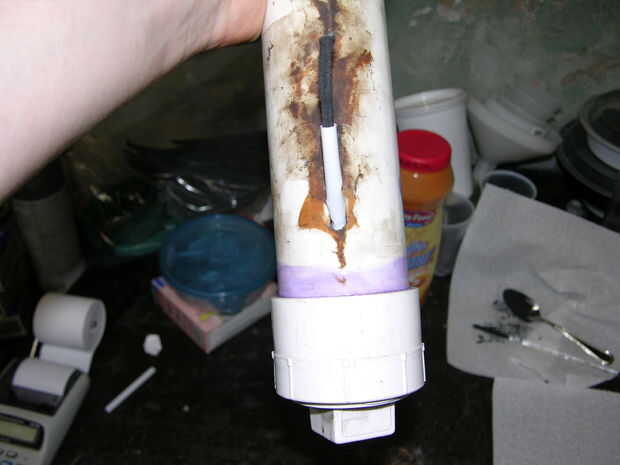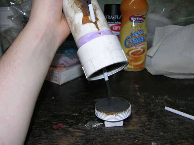 4. Atornille la tapa, sujetando el tubo vertical. Como atornillar en hacer seguro de fusible interno permanece en contacto con la pólvora. (Desde este punto en tratar de mantener la tubería vertical lo más posible, para evitar derramar la pólvora)