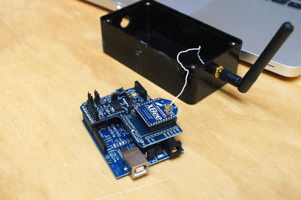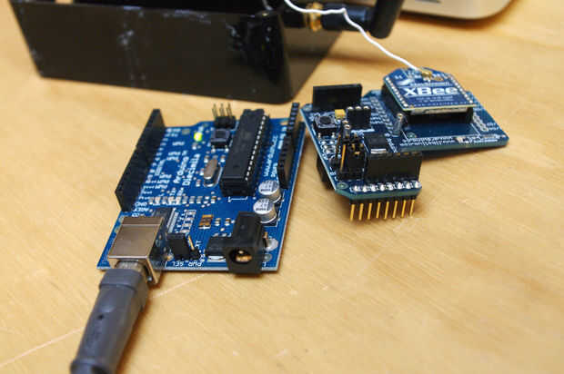 Abra el nodo transmisor de SquidBee y retire el Arduino de la shield XBee.