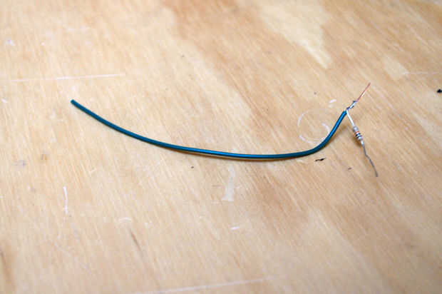 Soldar un cable a una pierna de un resistor de 10K. Soldar el extremo opuesto de este cable a uno de los terminales del interruptor.