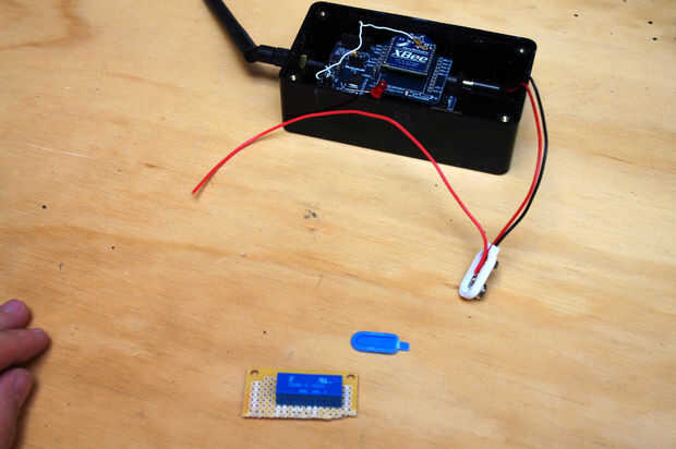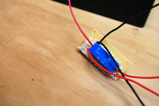 Conecte 9V a uno de los pines de carga del relé y un cable largo rojo a la otra. Para obtener fácil acceso a la fuente de alimentación de 9V, rompí la tapa del cierre de la batería de 9V y soldar un cable directamente a los + 9V batería Conector tab (Nótese el cable extra rojo desde el cierre de la batería de 9V).