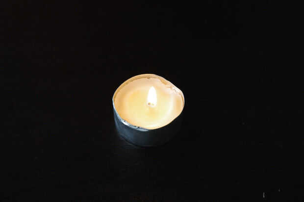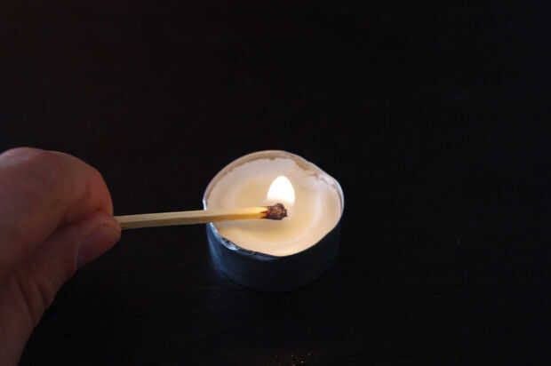Una luz de té y colocarlo en el sostenedor de vela.