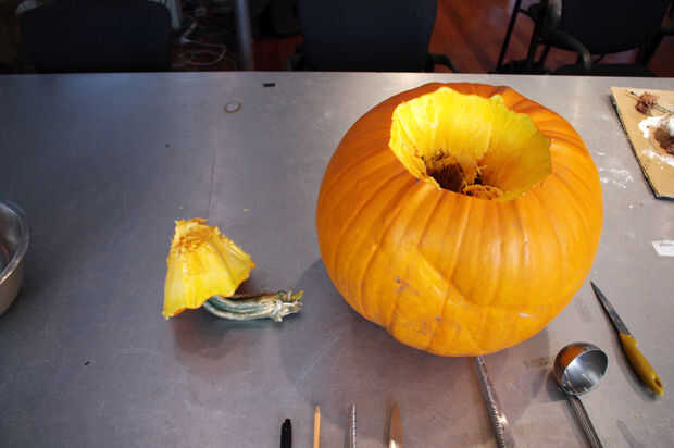 Después de que haya terminado de cortar todo el camino alrededor, quitar el tallo. Esto servirá como su tapa más tarde.