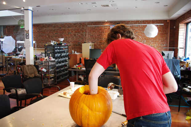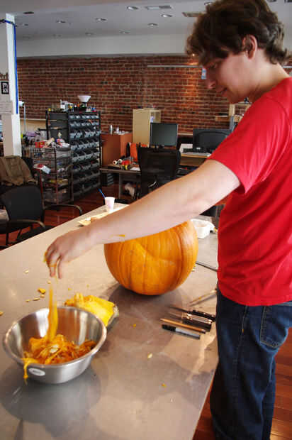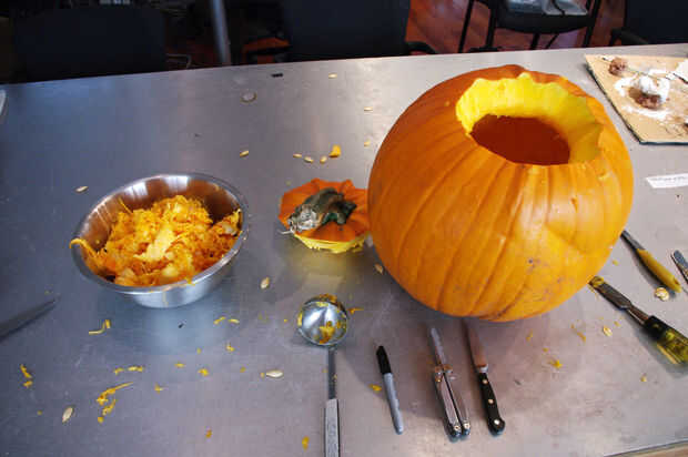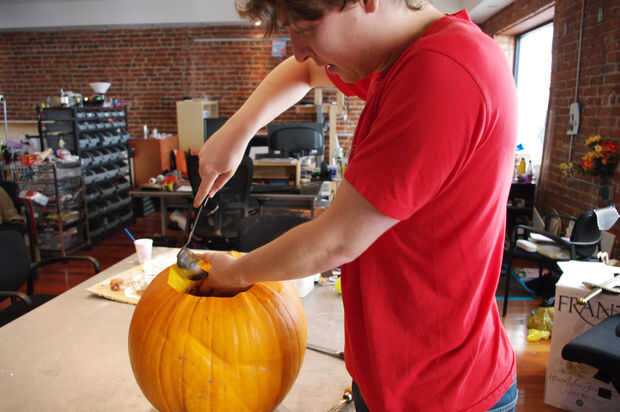 Quitar las tripas de la calabaza. Para comenzar debe ser fácil simple para sacar a mano, pero esto va a convertirse rápidamente en muy difícil.
