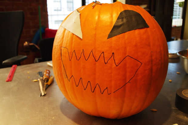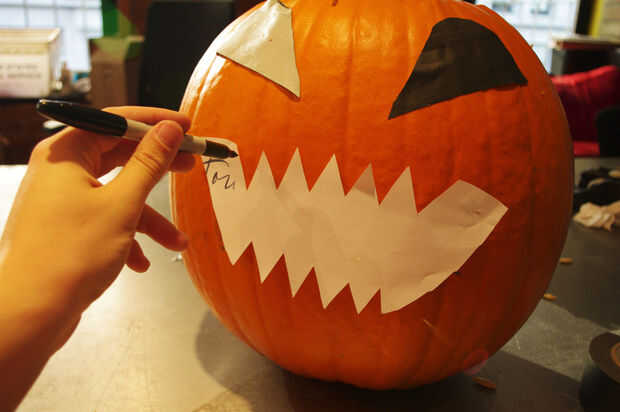 Con un marcador, trazar el contorno de la cara a la calabaza y retire el papel.