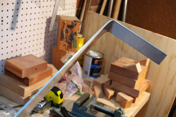 Agarra el borde que sobresale firmemente y empuje hacia abajo hasta que está doblada a 90 grados. De esta manera, puede empujar un poco más allá de 90 grados como el de aluminio tiende a moverse hacia un poco cuando se hace.