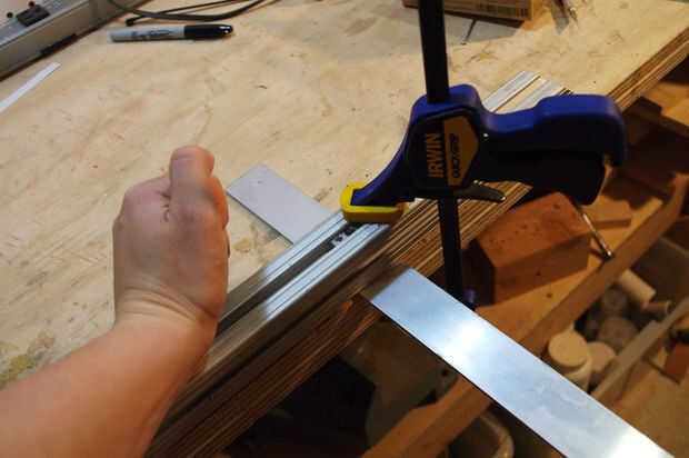 Haga una marca de 6" de uno de los bordes de la extrusión de aluminio.
