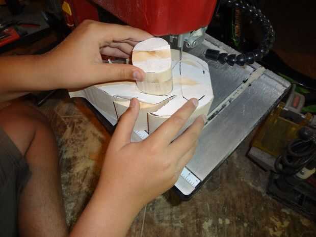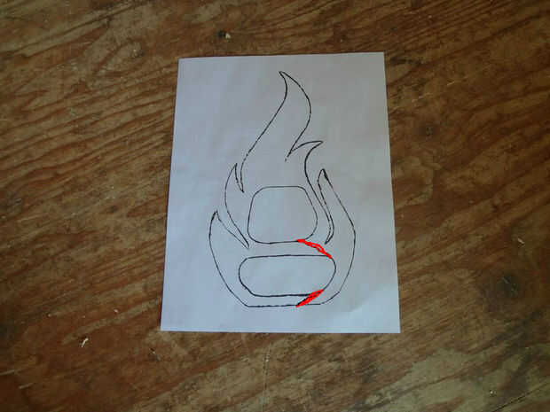 En la plantilla, dibuja líneas como los rojos en el primer cuadro para marcar los cortes de acceso. Corte a lo largo de las líneas rojas a los cajones. No importa el orden en que recortar los cajones. Asegúrese de cortar los cajones de una sola pieza y con un corte limpio. Guardar las piezas que cortó más adelante.