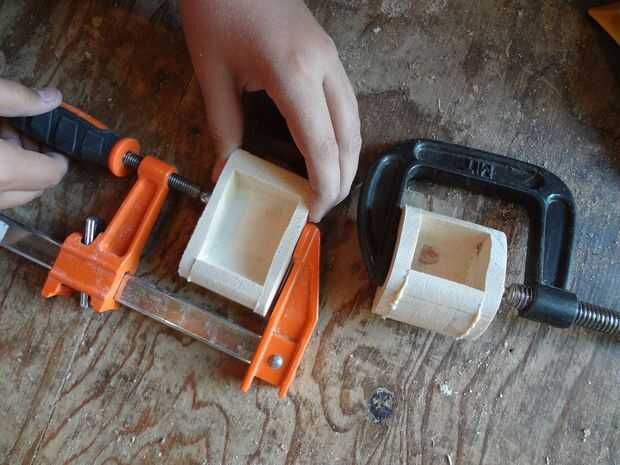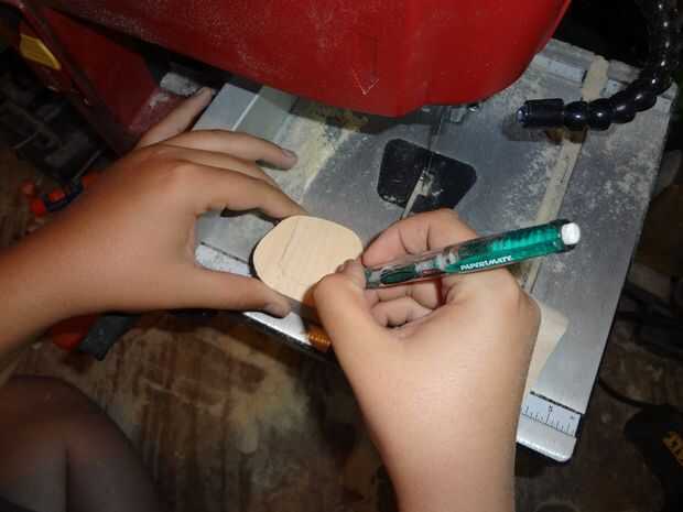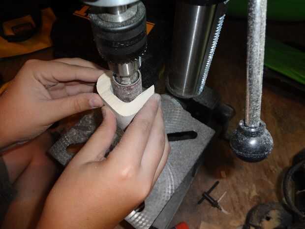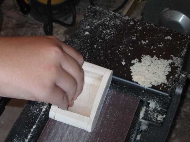 Tomar los espacios en blanco del cajón y cortar cada extremo de ellos. Dibujar la forma que desee dentro del cajón para ver como en las piezas del medianas. Asegúrese de que la abertura se encuentra en la parte superior. Con la lijadora de tambor, el interior del cajón de arena hasta que quede lisa. Pegue los frentes y respaldos a los mismos fines que corta. Una vez seco el pegamento, lijar el exterior de los cajones hasta que estén suaves.