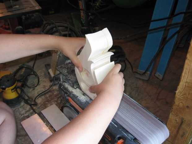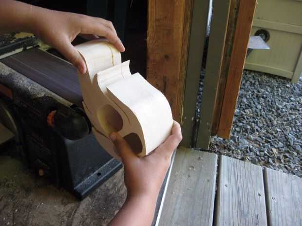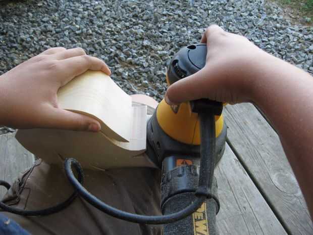 Con la lijadora de banda, lije las caras y los bordes que se puede. Utilice una lijadora orbital para lo que no puedes con la lijadora de banda de la arena. Poner la caja vicio y utilizar una tira de papel de lija para lijar en las grietas.