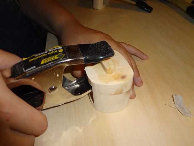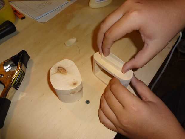 Para los tiradores, dibujar las formas que desee en un pedazo de madera delgada. Recorta las formas áspero mango y arena hasta la forma final en la lijadora de disco. En un borde, hacer un divot. Será la parte de atrás. Pegar las asas a los frentes de los cajones. Asegúrese de que la hierba esté apuntando hacia abajo, no hasta.