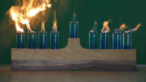 Llene la menorá con disparos. Si deseas este disparo llameante de Hanukkah. Tiene un efecto asombroso!