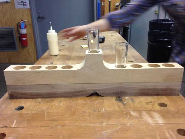 Unir las últimas piezas de cherry y maple. Asegúrese de que los bordes están perfectamente alineados.