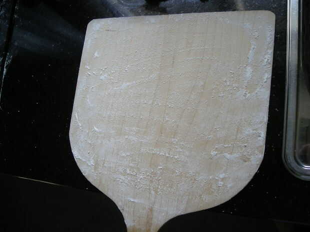 Harina de la cáscara y empezar a estirar la masa en su forma.