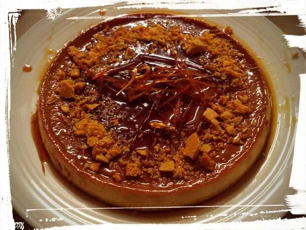 Decorar con caramelo desmenuzado y azúcar hilado. ¡ O no! El flan es bastante impresionante por sí sola sin los aderezos, como el azúcar en la base crea un precioso top jarabe oro.