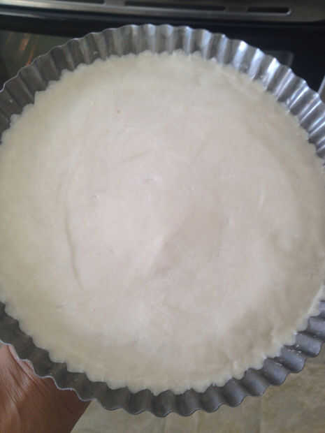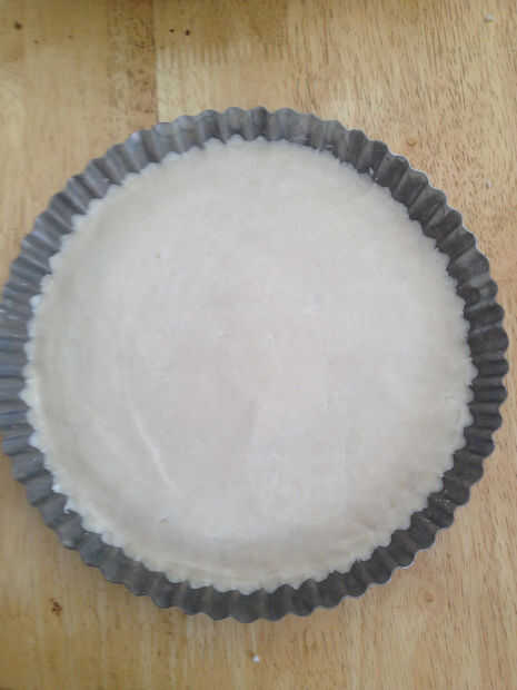 Presione firmemente sobre fondo y lados de una tartera de flan