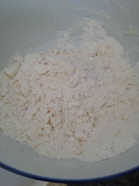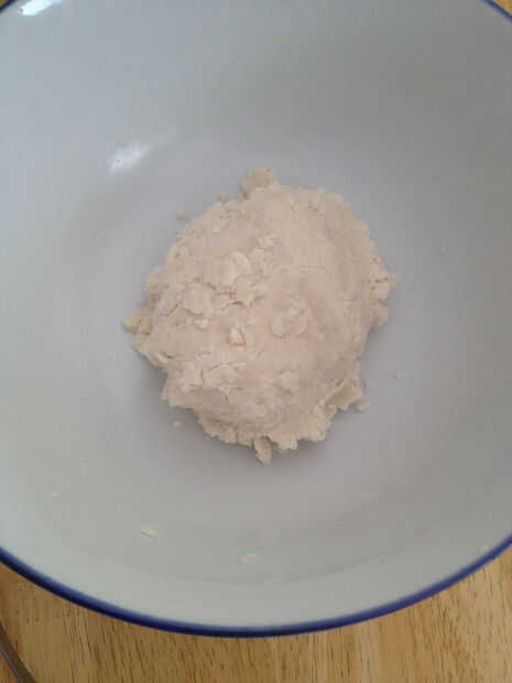 Mezclar todos los ingredientes con un tenedor hasta obtener textura gruesa, luego formar una bola. Dejar enfriar en la nevera durante 30 minutos.