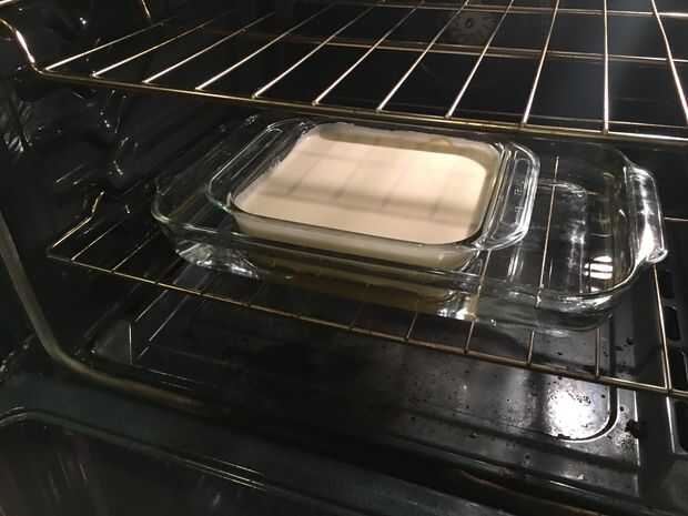 • Luego poner el el flan mixto cristal pan dentro de la bandeja de vidrio lleno de agua.