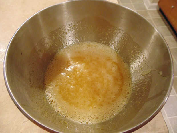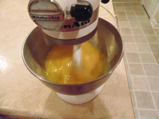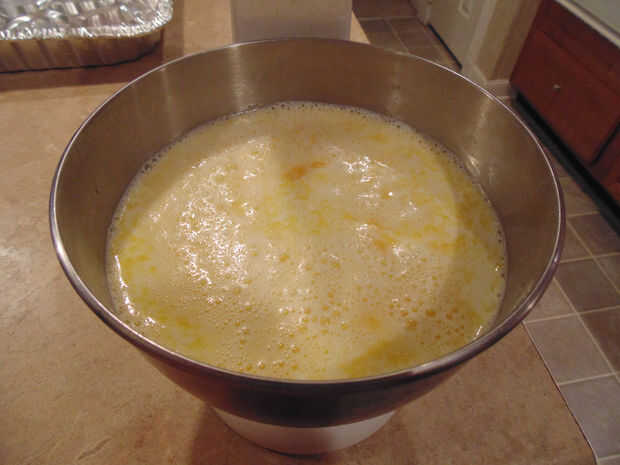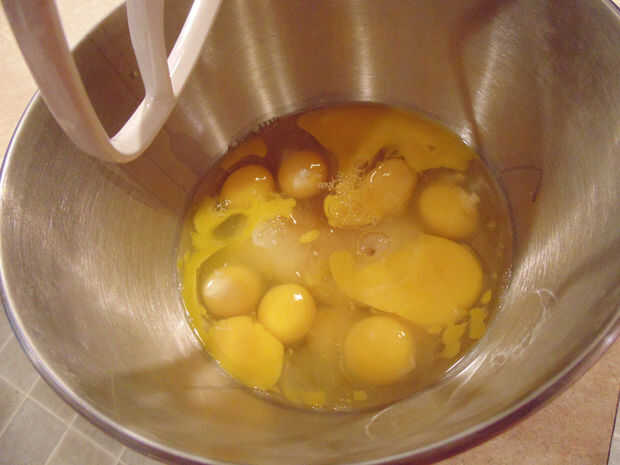 Mientras está calentando, preparar tus huevos, azúcar, vainilla y sal, mezclando hasta que se mezclen, pero no lo consiguen espumosas.