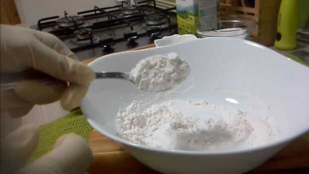 Añadir el almidón de maíz, color de alimento y polvo de esencia de vainilla en un tazón y mezcle bien. Así el polvo de flan está listo.