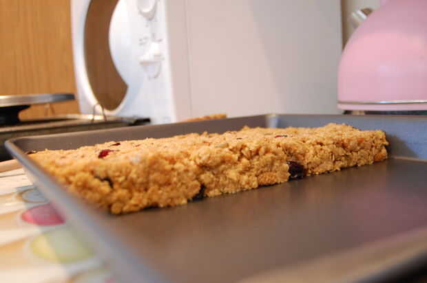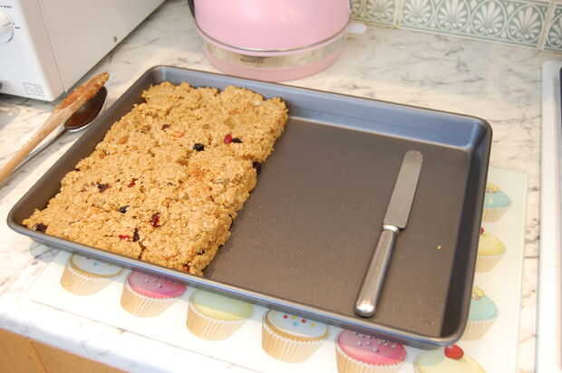 Si estás poniendo fruta entonces puede ser útil empujarlo debajo de la avena, ya que se cocina mucho más rápido.