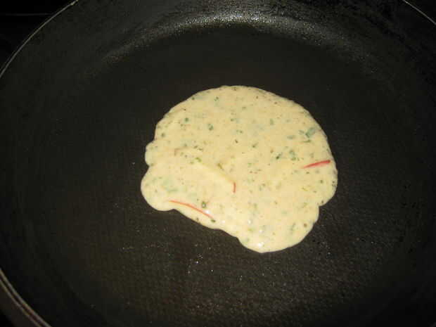5. caliente una sartén antiadherente grande. Deje caer la masa en pan y cocinar aproximadamente 1-2 minutos por cada lado.