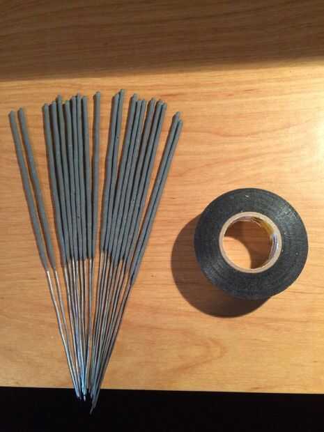 Todo lo que necesitas para hacer la llamarada es algunas pulgadas ocho pequeñas luces de Bengala (la clase usada en los pasteles) y alguna cinta aislante. Utilicé un paquete de veinte desde el almacén del dólar para esta llamarada. Usted puede utilizar más de un efecto más potente, pero tenga en cuenta las más bengalas más calor y por lo tanto necesita guantes más gruesos para mantenerlo.
