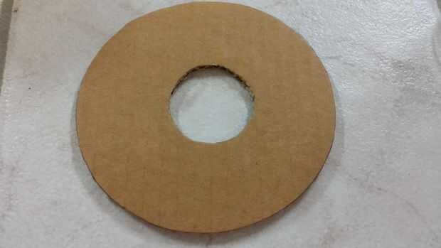 En el centro de este círculo de cartulina, trace la plantilla de círculo pequeño. Corte el círculo pequeño con un cuchillo afilado.